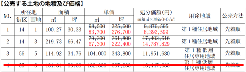 区画敷地面積販売価格その他販売状況